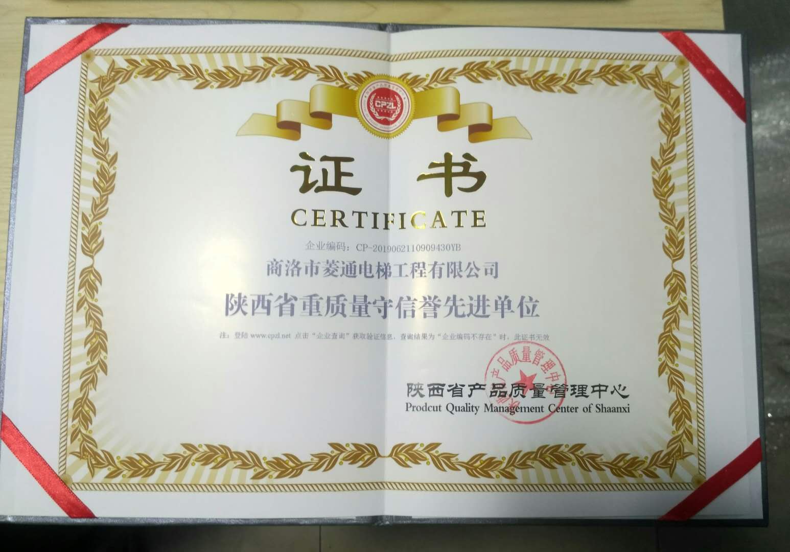 商洛菱通電梯工程有限公司,2019年很榮幸被陜西省產(chǎn)品質(zhì)量管理中心評為:陜西省AAA級信譽單位和陜西省重質(zhì)量守信譽先進單位;并頒發(fā)獎牌及榮譽證書。這個榮譽不但得益于各單位的支持與默契合作,更得益于我公司優(yōu)良的團隊氛圍和集體上下一致積極認真的工作態(tài)度。更得益于領導重承諾守信譽:提倡安全第一,質(zhì)量第一,信譽第一的原則。能被評為3A級信譽單位和信譽先進單位,既是對公司工作的肯定,也是對今后工作做得更好的一種鼓勵,我公司定會盡職盡責做得更好。